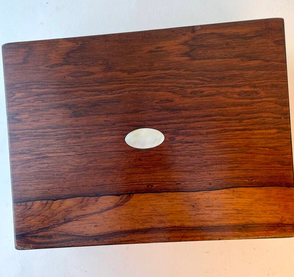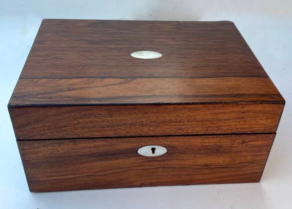 A lovely sizeable rosewood jewellery, workbox or for small sewing pieces with a lovely grain on the top