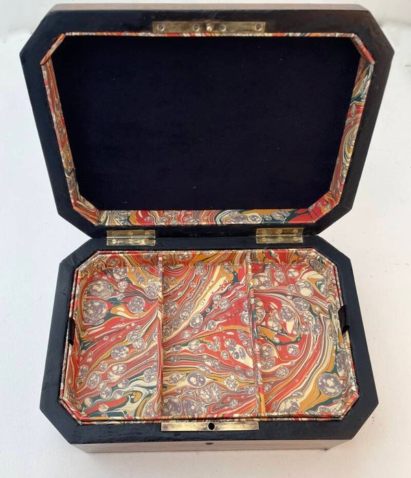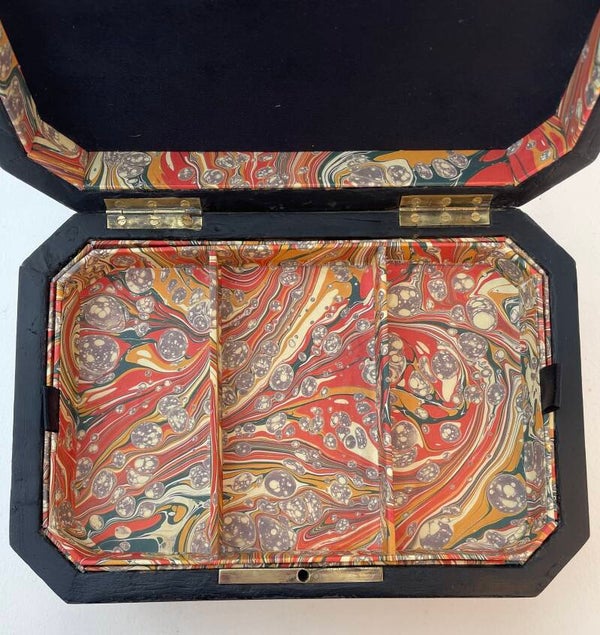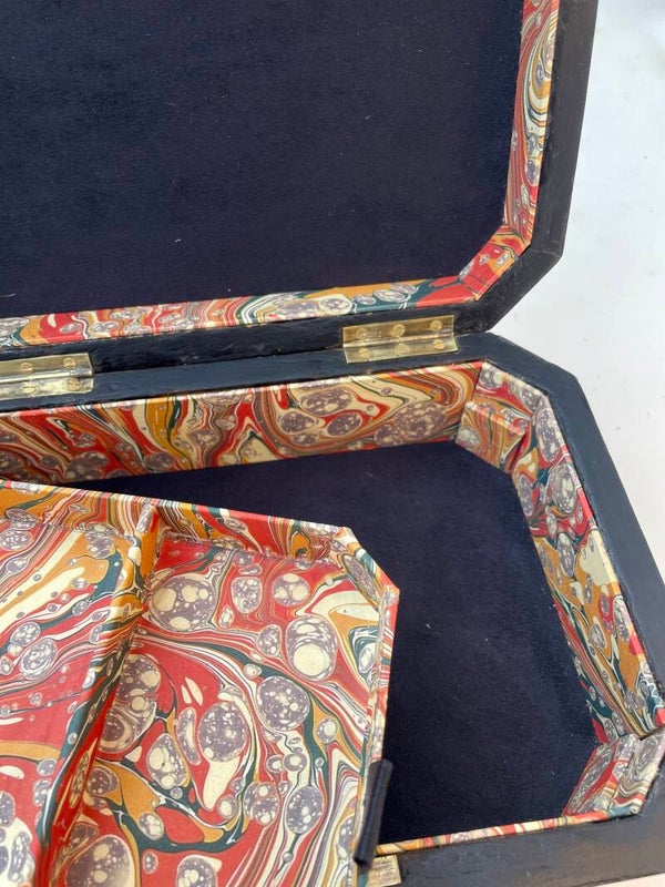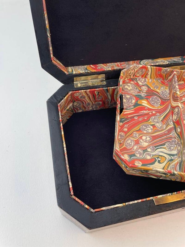 Lined with fine black cotton velvet and vibrant printed marbled paper