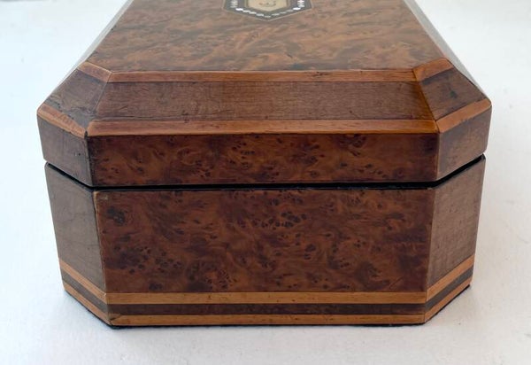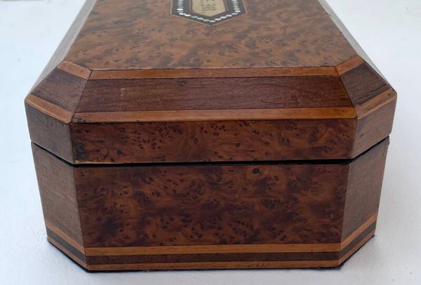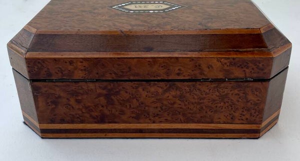 Antique Burr Walnut Jewellery/Cufflink Box with Mother of Pearl Inlay (Late 19th Century)