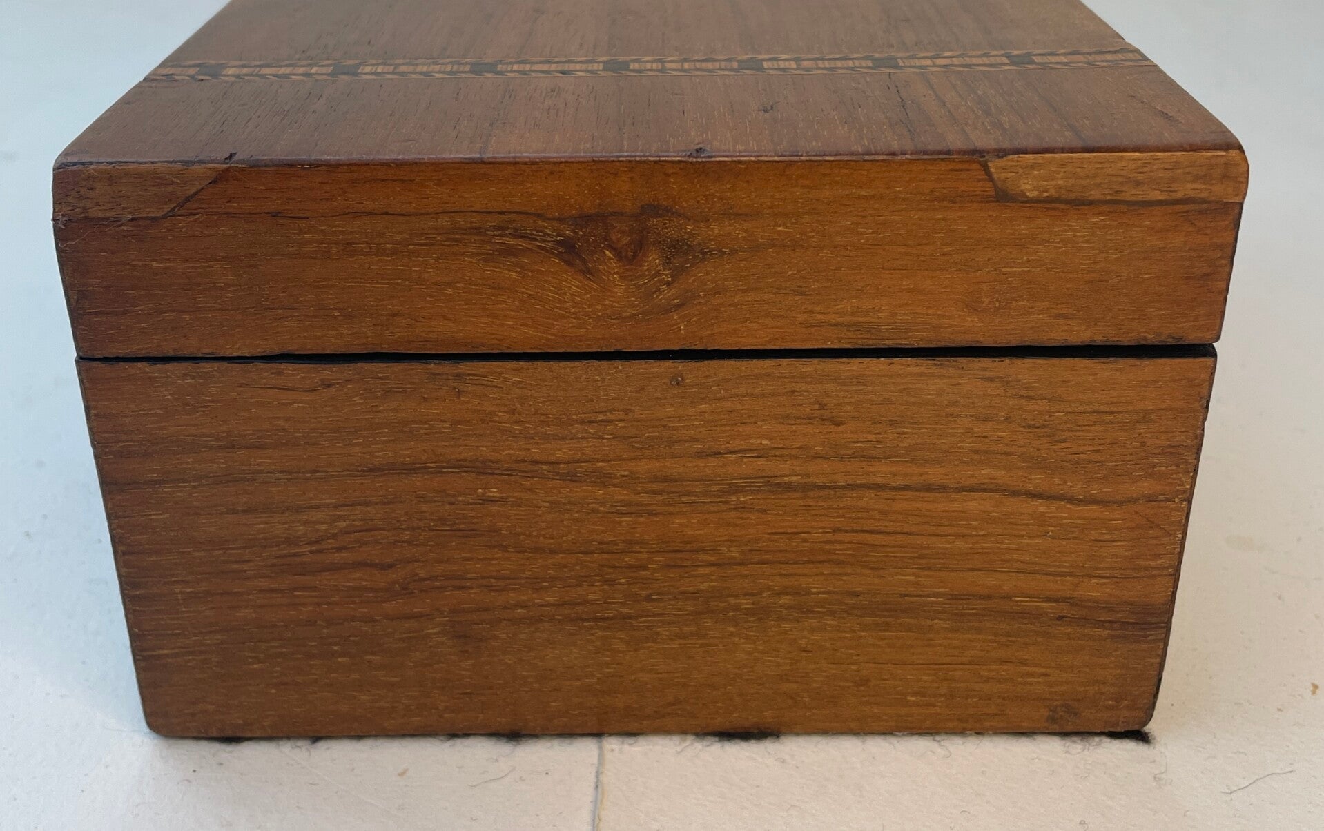 Quite a pretty restored walnut Tunbridge ware style box suitable for small jewellery pieces, cufflinks or mementos'